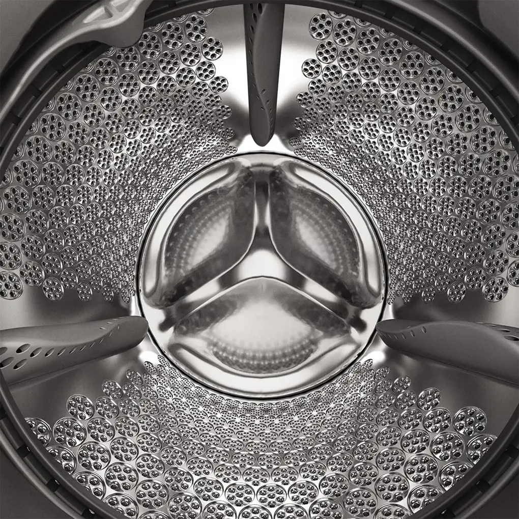Lồng giặt được chế tạo từ thép không gỉ, giúp bảo vệ quần áo hiệu quả trong suốt quá trình giặt và giảm thiểu hư hại. Bên cạnh đó, việc vệ sinh và lau chùi máy cũng trở nên đơn giản hơn, tiết kiệm thời gian cho bạn.