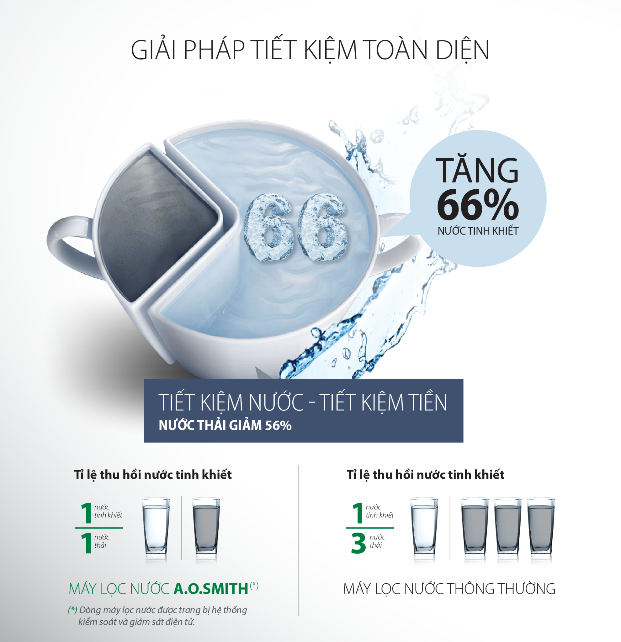 Màng lọc RO – Side Stream là phát minh đột phá của A. O. Smith, được cấp bản quyền sáng chế tại Mỹ (patent US8,337,698 B2), giúp giảm lượng nước thải, duy nhất cho tỷ lệ nước thải : nước tinh khiết là 1:1 và kéo dài tuổi thọ lõi lọc đến 3 năm, mang đến “Giải pháp tiết kiệm toàn diện” cho người sử dụng. Màng lọc RO – Side Stream loại sạch kim loại nặng (Asen, chì, thủy ngân…) và các vi khuẩn có hại.