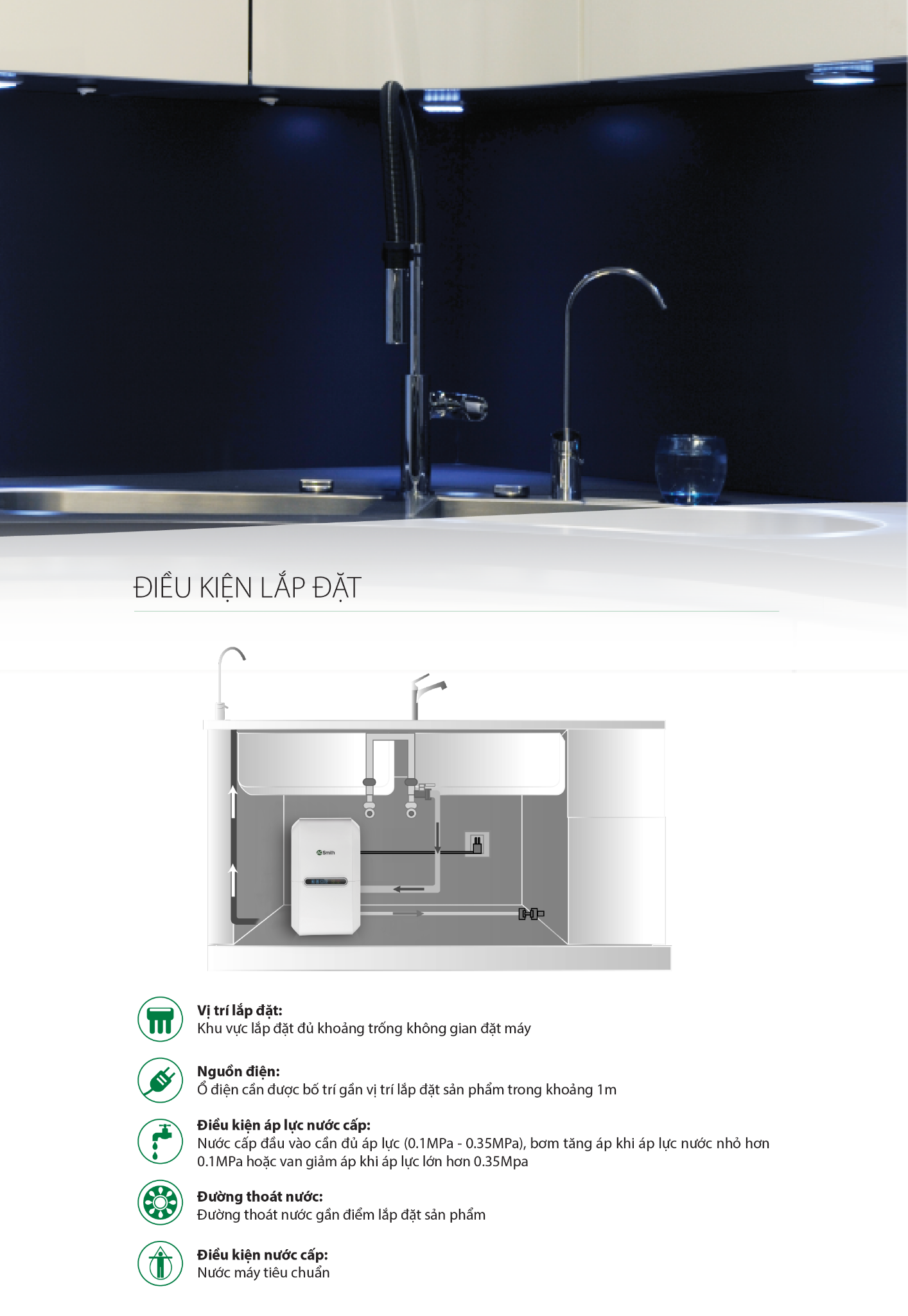 Cảnh báo thay thế lõi lọcCảnh báo rò rỉSục rửa lõi lọc tự độngVan điện từ tích hợpCảnh báo lỗi vận hành