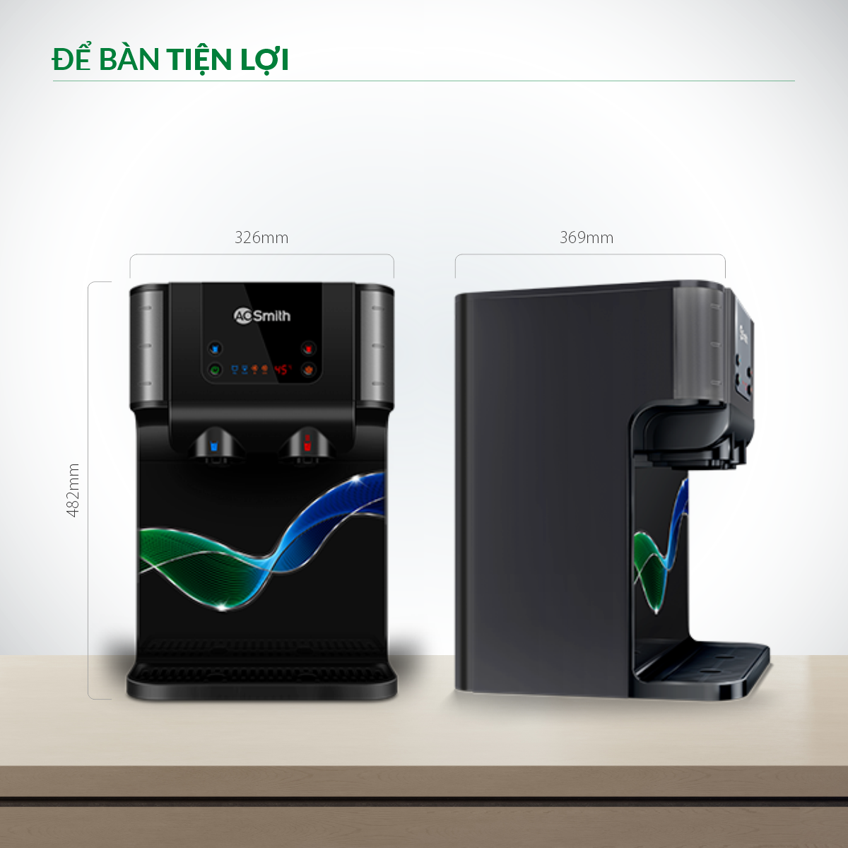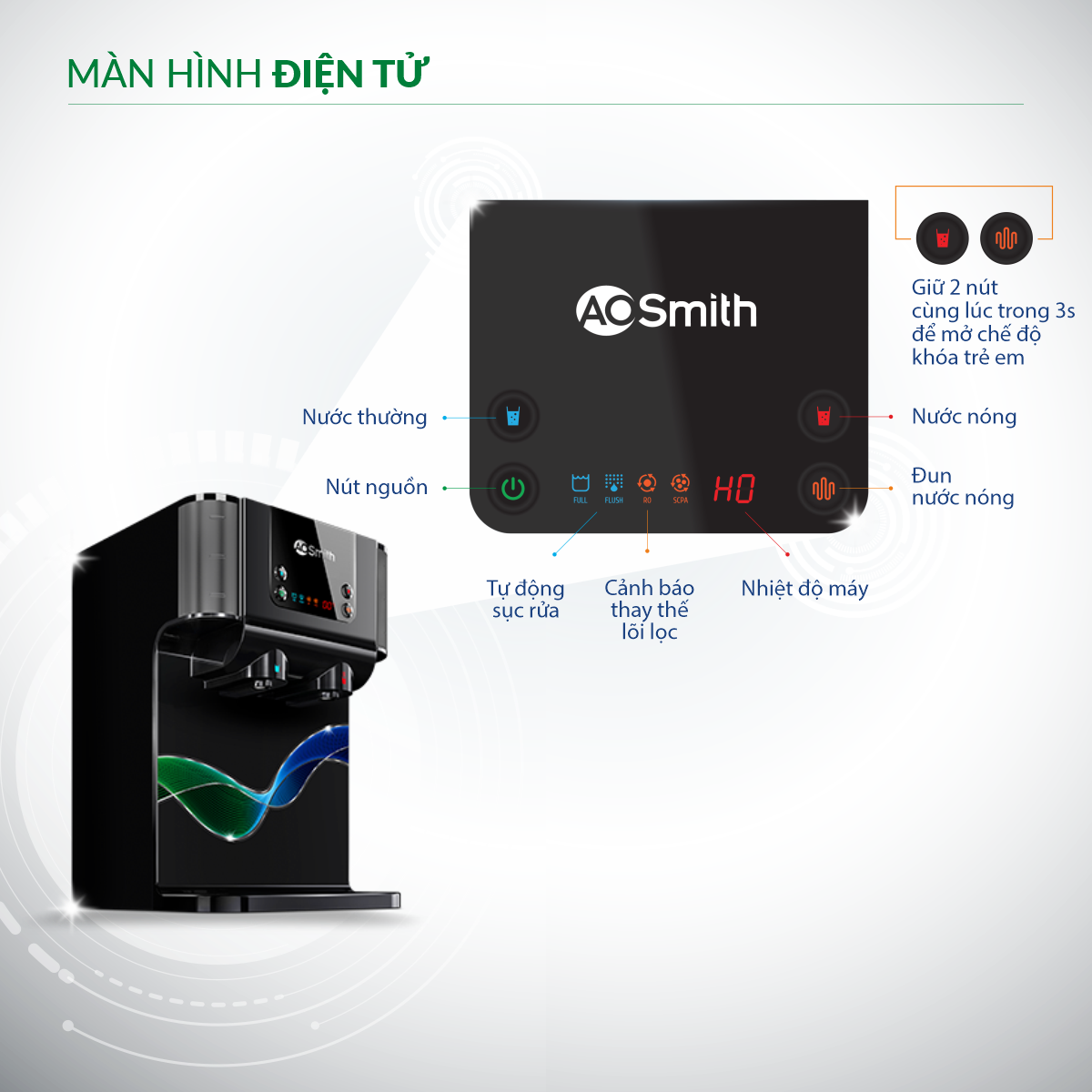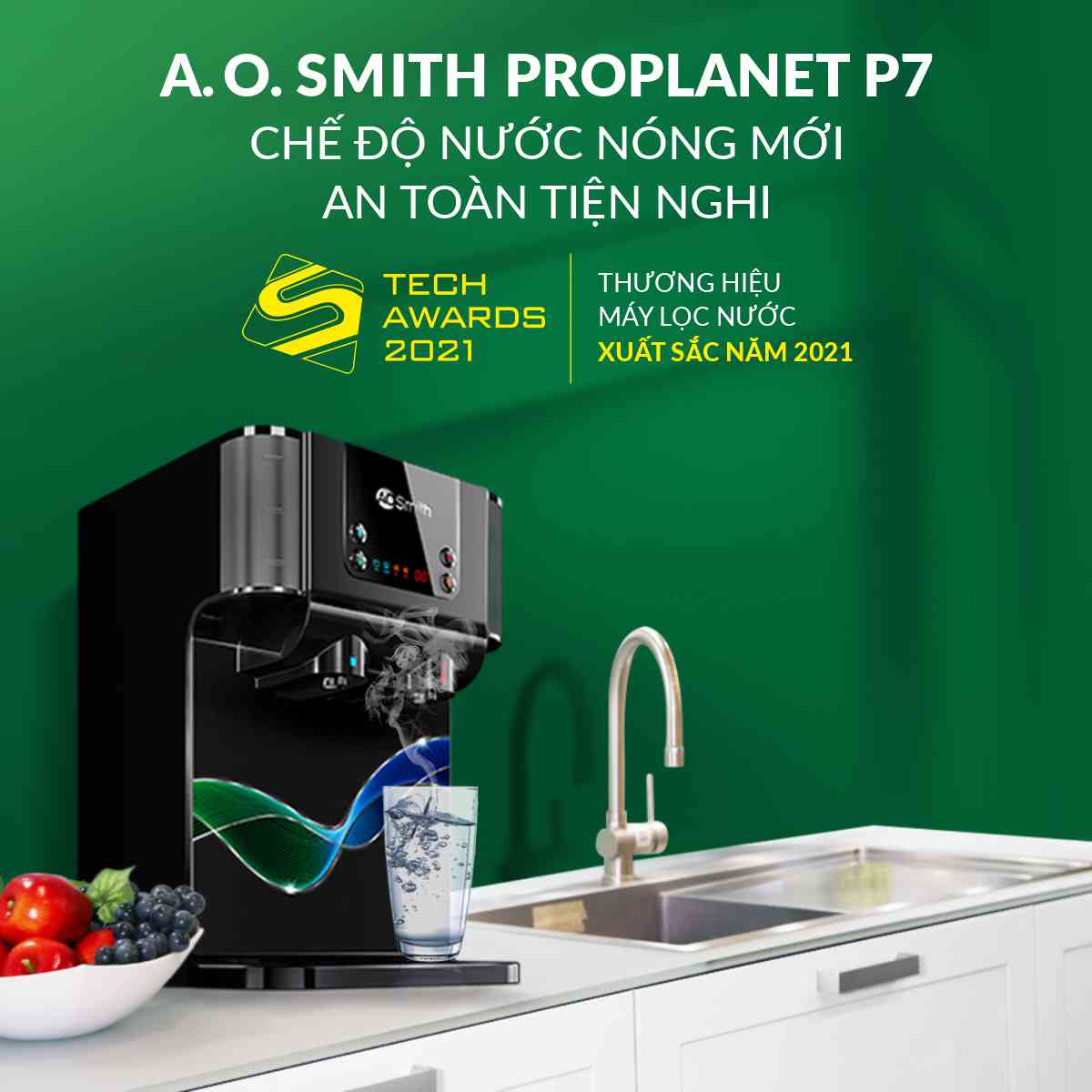 Máy lọc nước A. O. Smith P7 có 2 tính năng: nước nhiệt độ thường và làm nóng nhanh 2 chế độ nhiệt (45°C và 80°C), với dung tích bình chứa đến 9.2/0.8L (thường/nóng).