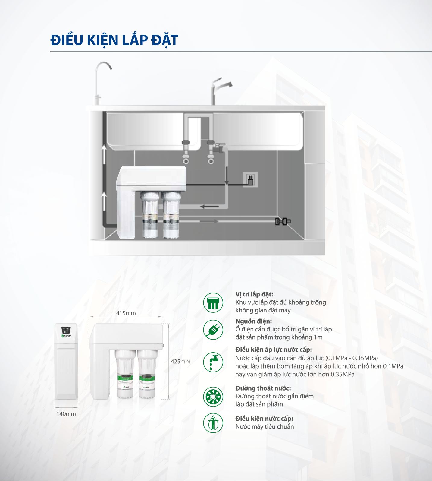 Thiết kế không bình chứa giúp sản phẩm siêu mỏng với độ dày chỉ 14cm, vừa vặn với mọi không gian bếp, phù hợp đặt trên bàn bếp hay dưới chậu rửa gọn gàng và thuận tiện.