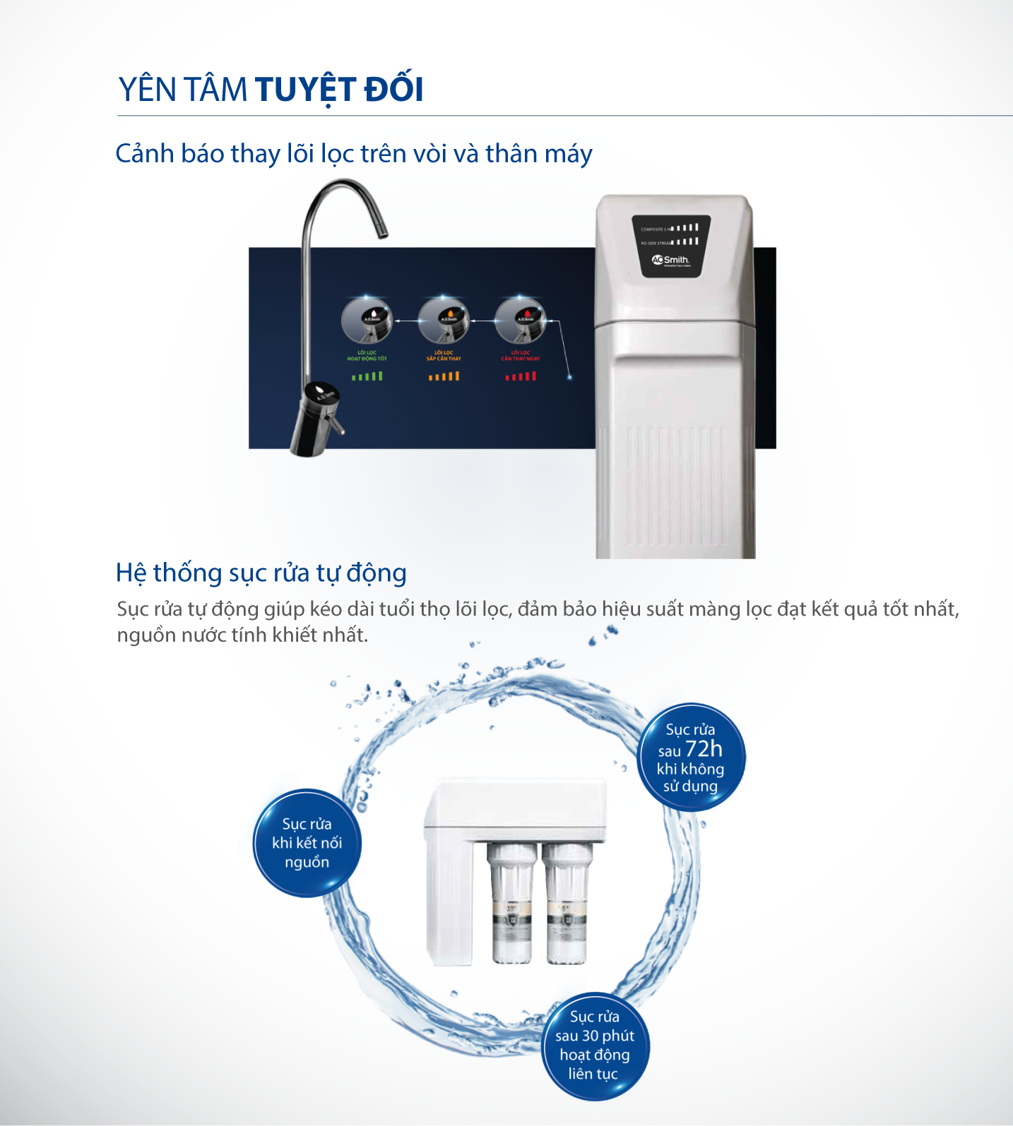 Cảnh báo thay thế lõi lọc hiển thị ngay trên thân vòi giúp dễ dàng theo dõi tình trạng lõi lọc và đảm bảo nguồn nước luôn tinh khiết.