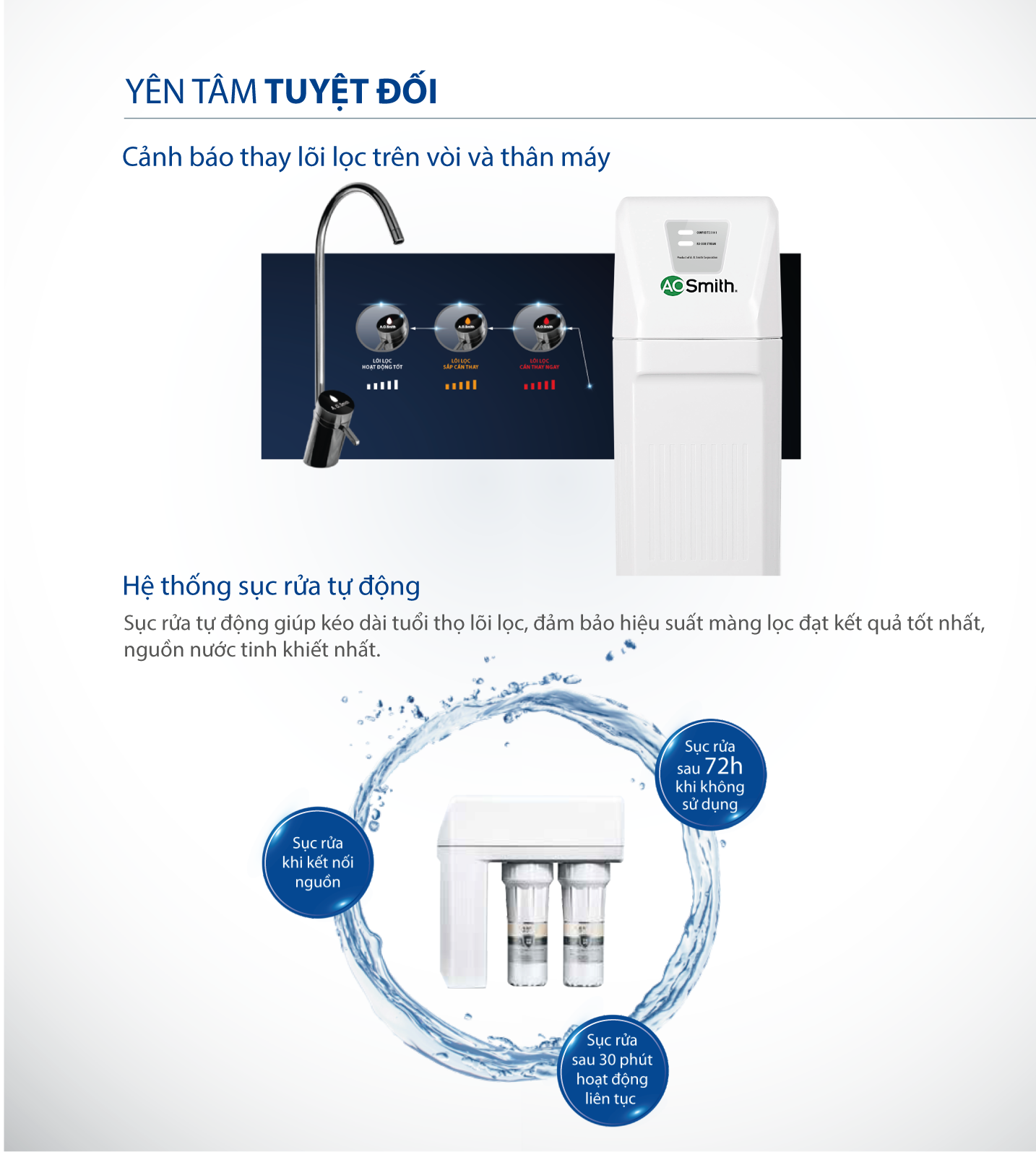 Cảnh báo thay thế lõi lọc hiển thị ngay trên thân vòi giúp dễ dàng theo dõi tình trạng lõi lọc và đảm bảo nguồn nước luôn tinh khiết.