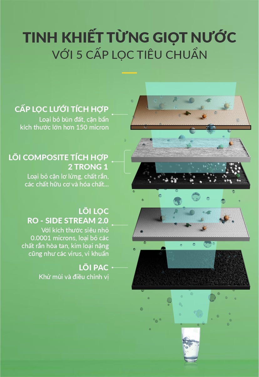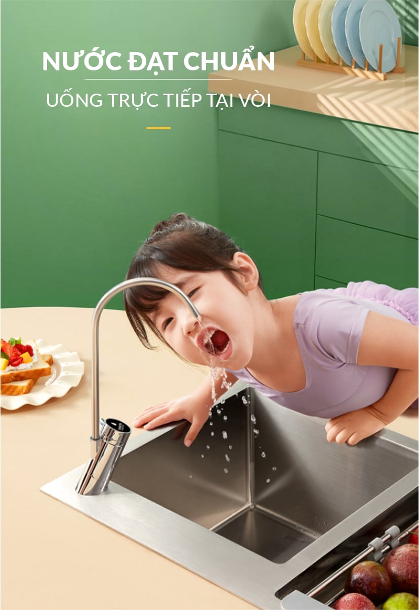 Công suất lọc lớn nhất lên tới 1.100 ml/ phút, nước được lọc trực tiếp ngay khi mở vòi đảm bảo luôn tươi mới và đáp ứng nhu cầu sử dụng nước liên tục của đại gia đình.