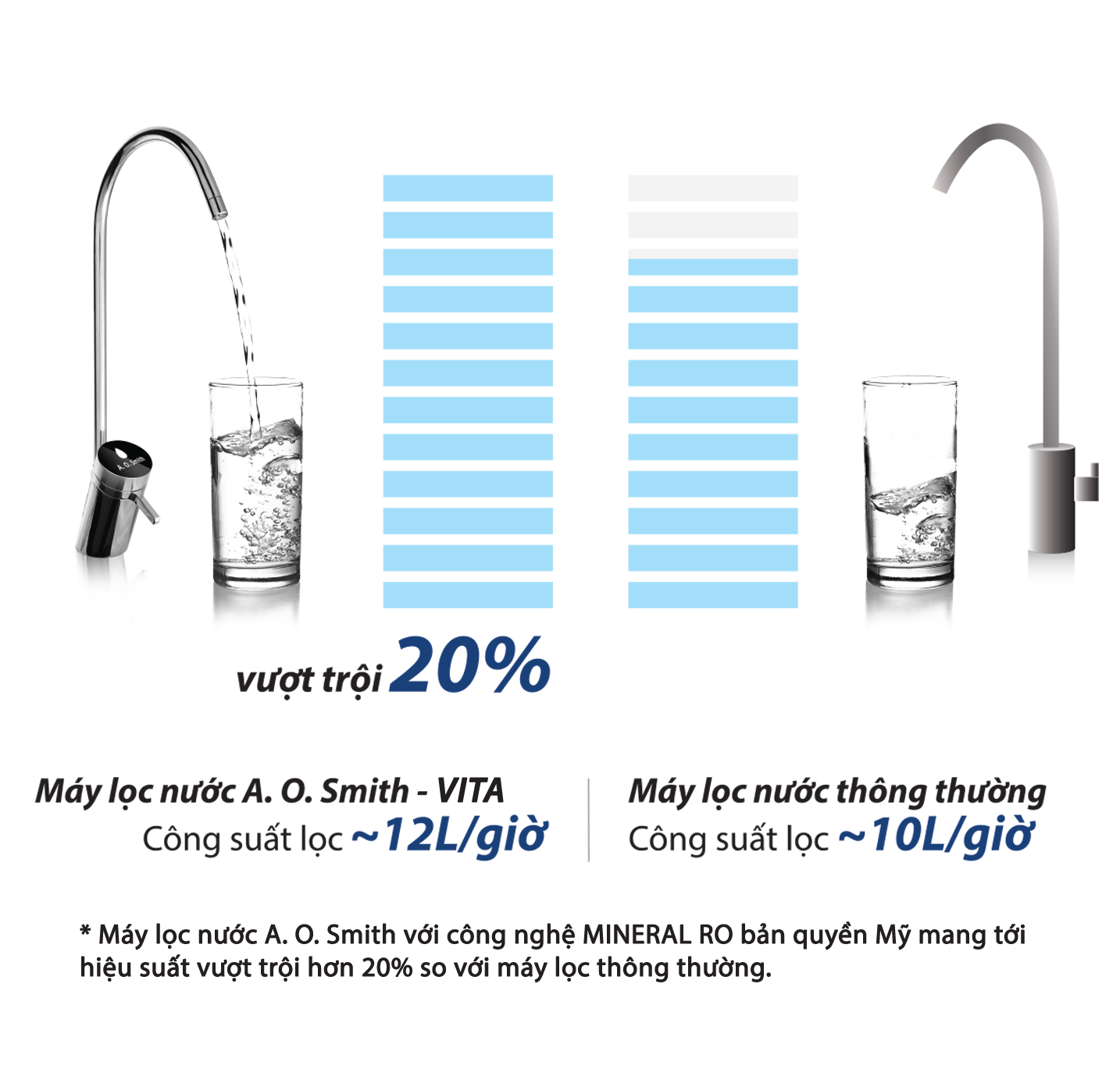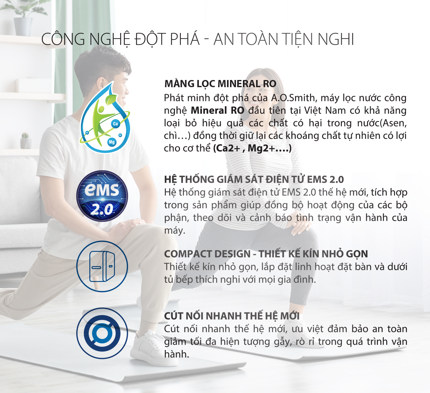 Phát minh đột phá của A. O. Smith, máy lọc nước công nghệ RO đầu tiên tại Việt Nam có khả năng loại bỏ hiệu quả các chất có hại trong nước (Asen, Chì, Thủy Ngân…) đồng thời giữ lại các khoáng chất tự nhiên có lợi cho cơ thể.