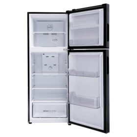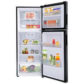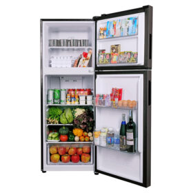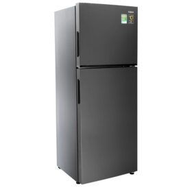 Tủ lạnh thuộc loại ngăn đá trên 2 cửa, sở hữu dáng thiết kế vuông vức hiện đại với gam màu xám đen sang trọng, điểm nhấn làm nổi không gian nội thất trong gian bếp của gia đình.