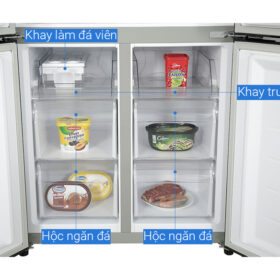 – Dung tích ngăn lạnh 316 lít. Bên trong tủ được thiết kế có kệ, ngăn đựng thực phẩm tươi và ngăn đựng thực phẩm khô. Ngoài ra, mỗi bên cánh cửa tủ lạnh cũng được thiết kế thêm khay chứa.